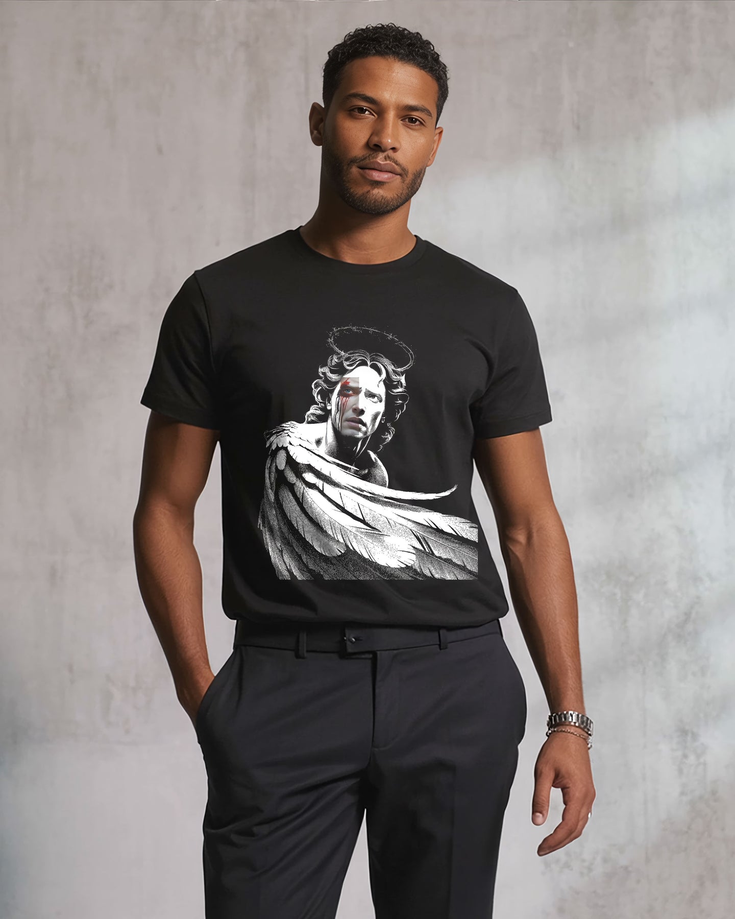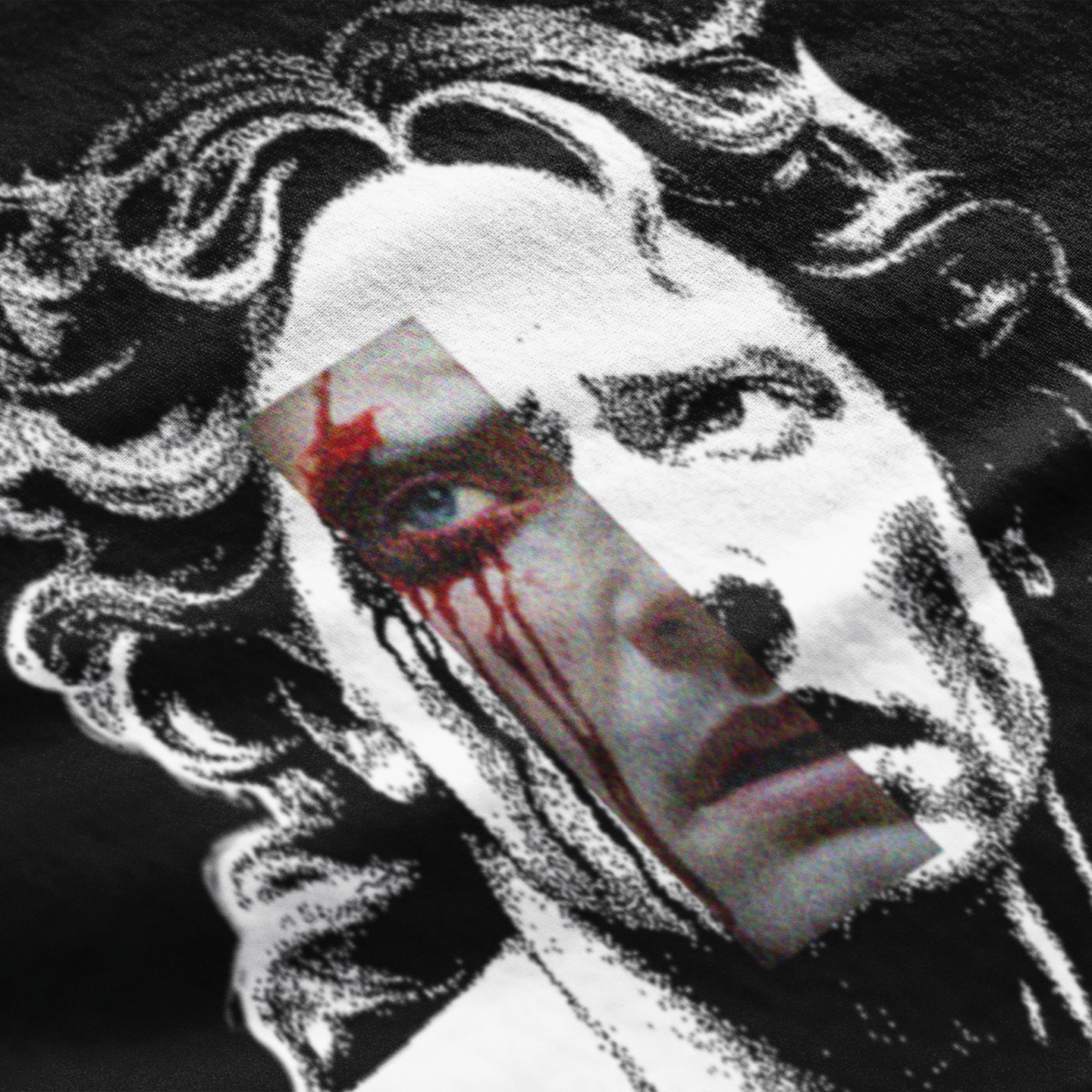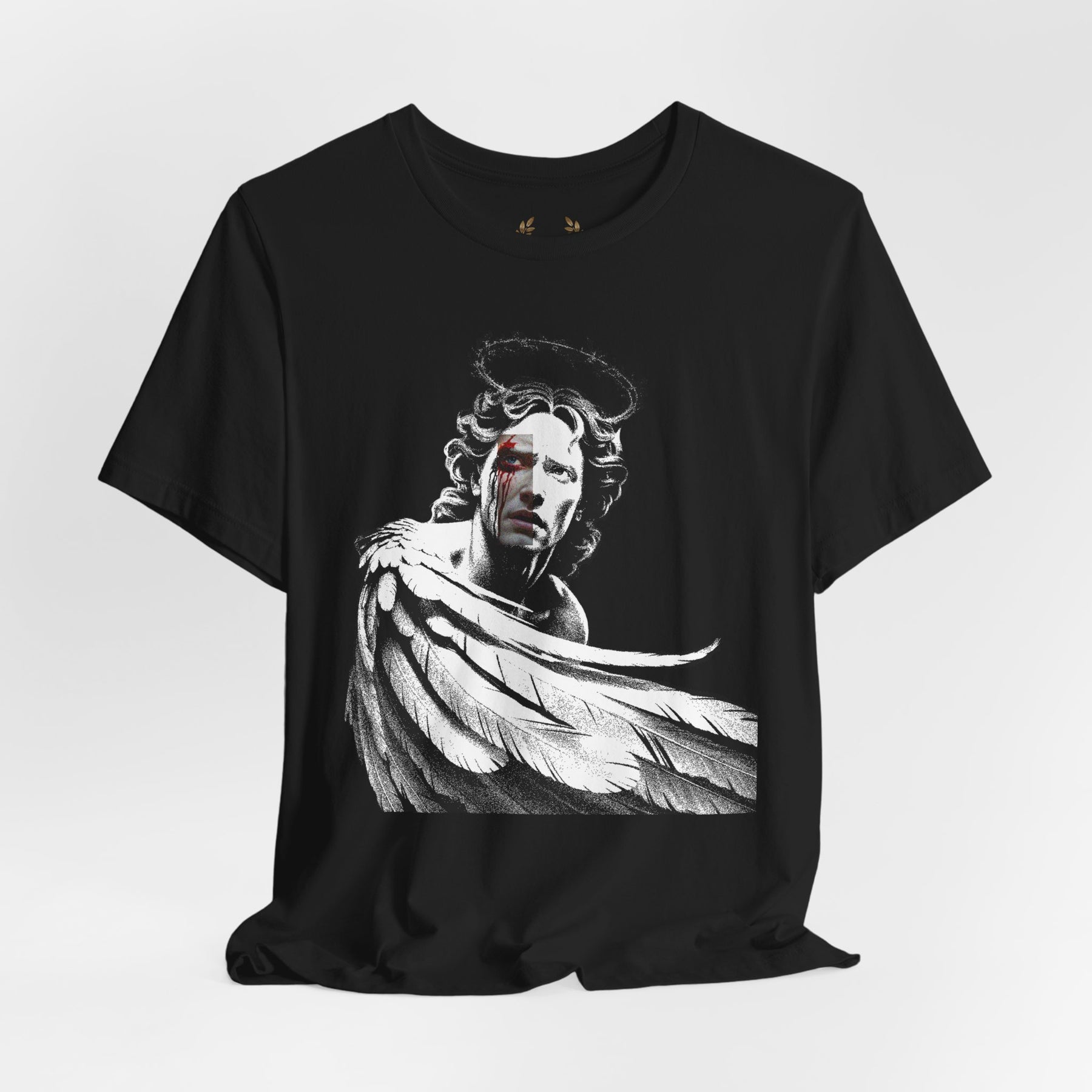 The Chiaroscuro™ technique, in contrast, uses the fabric's own color as part of the artwork. The ink fuses directly with the cotton fibers, becoming one with the garment.